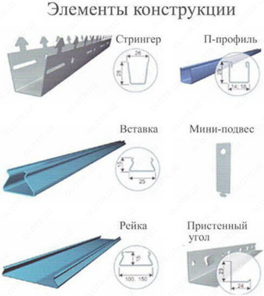 Основными элементами подробных конструкций являются длинные и узкие алюминиевые или стальные панели различной ширины.